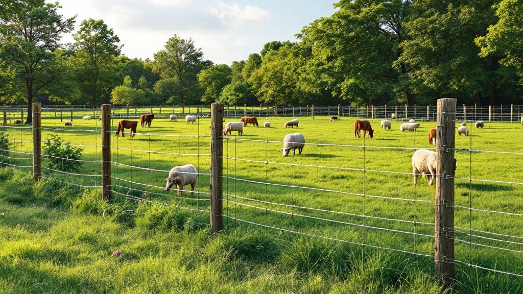 Pferde benötigen Zäune ab 130 cm, Rinder ca. 120 cm, Schafe und Ziegen 90–110 cm. Für Geflügel sollten feinmaschige, niedrige Netzzäune genutzt werden.